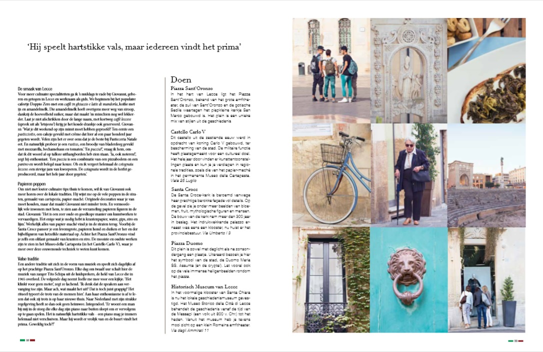 Voor magazine De Smaak van Italië maakte ik een reisreportage (in tekst en beeld) van Lecce. Klik op de afbeelding om het artikel te openen.